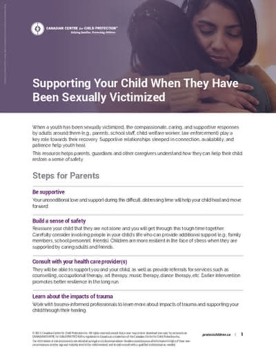 When a child is sexually victimized, whether by someone online, in the family, or a trusted community member, the sense of betrayal can be overwhelming. Protective caregivers are often lost about what to do and how to help their child. To assist families in navigating the recovery process, C3P has developed tailored resources.