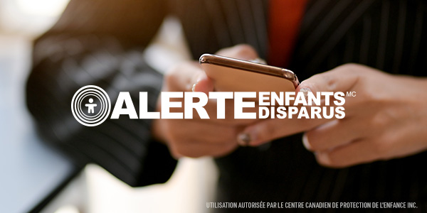 L’AlerteEnfantsDisparus est un service d’alerte à la population mis en place par le Centre canadien de protection de l’enfance dans le but de diffuser des renseignements essentiels en cas de disparition d’enfant. Les Canadiens peuvent s’abonner rapidement et facilement à ce service afin de recevoir par courriel des avis de recherche qui peuvent ensuite être partagés sur diverses plateformes électroniques. Abonnez-vous pour recevoir l’AlerteEnfantsDisparus en cas de disparition d’enfant dans votre région.